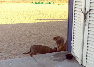 Hoje o meu pequeno dono foi à praia e até molhou os pés. Eu não fui. Quando ele chegou contou-me que apareceu por lá uma senhora com um cachorrinho branco com apenas dois meses que ela tinha encontrado na rua e que levou para casa. Nem era preciso ele dizer porque eu já sabia! Ele tresandava a cachorro! A senhora já tinha 4 cães e um gato, mas dois dos cães estavam muito velhos. E assim ele ficou com este.